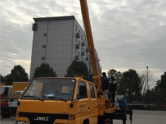 功能说明:18米升降车采用五十铃单排底盘,五十铃发动机139kw,750轮胎,作业高度18米,国四排放标准,三节折臂液压举升装置,采用国产、进口换向阀及液压油缸,换向平稳,操作方便灵活,转台、工作斗双工位操作,支腿与工作臂互锁,安全可靠,防止误操作,H型支腿,跨距大,稳定性好,支腿即可独立伸缩,又可联动,装有支腿爆闪灯,用于支腿示廓,发出光报警信号。工作斗自动调平,外置拉杆强制平衡,带1吨吊钩,360度连续旋转,工作斗最大载荷200KG。